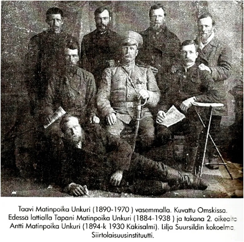 Около 40 лет назад мужчина по имени Матти Ункури из Юлихярма переехал из финской тюрьмы к фермеру на поселение. Сейчас у него большой дом в приходе в Бугене и много детей. Четверо мальчиков находятся на войне, пятый недавно вернулся домой с тяжёлыми ранениями. (Это, наверное, Семён. – В.Ч.) Недавно пришло письмо от человека по имени Давид с территории Турции дяде Кристоферу Ункури в Юлихярма. Он говорит, например, что брат его жены Никко, сын Габриэля Андреева из села Ориково в Сибири, согласно информации, полученной от его брата Антти, упал от ранения, полученного им от пули вражеской пушки. Родители, жена, две сестры и один ребёнок – из Сибири, которую оставил муж. Тот сибирский Тааветти (Давыд) Ункури просит написать об этом случае в журнале Vaasa. Потому что этот журнал, тоже идёт его родителям в Бугень. У его брата Стефано тоже есть человек из Риги (в то время в Калачинском районе было такое село, и там проживали эстонцы, финны, латыши). Далее Давыд говорит, что дни на турецкой земле тёплые, а ночи прохладные. В других местах снег по грудь, а местами опять по колено грязь. Таавети Ункури обещает вернуться в Сибирь следующим летом, и будет хорошо, если Бог также позволит ему приехать в Финляндию к дяде Кристоферу в Юлихярмя Ункуринкюля».