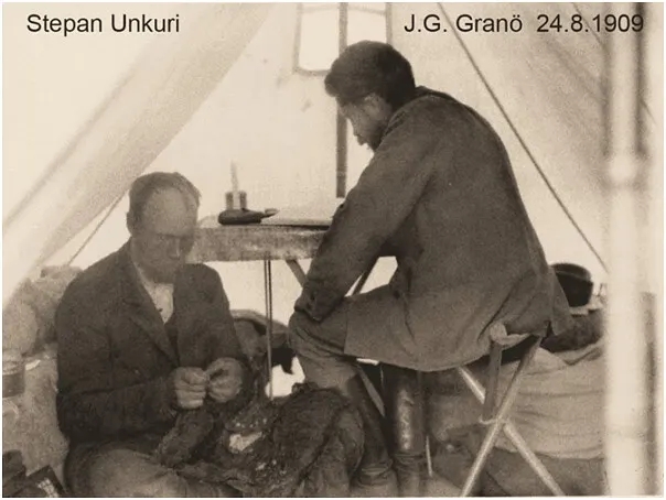 В 1902 году в Бугень приехал учёный-путешественник Йоханнес Гранё, выходец из Финляндии, отец которого был пастором в финских деревнях. Вместе с ним Степан отправился в экспедицию – помощником. Он прошёл с Йоханнесом Алтай, Урянхой (Тува) и Северо-Западную Монголию – это были 1902, 1906–1907, 1909 годы, а в 1913-м состоялась последняя для Степана экспедиция, вскоре после возвращения из которой, в 1915 году, его забрали на войну.