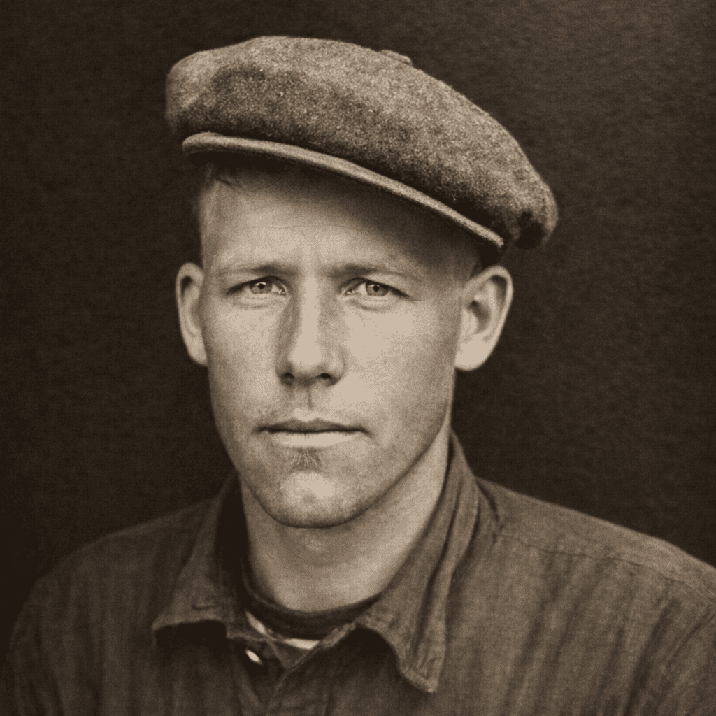 Ещё на одном фото из книги, изданной в Финляндии, есть сыновья Матти Ункури. Степан лежит на полу, в центре сидит его брат Андрей, а стоит первый слева – Давыд. Где и когда было сделано это фото, мне неизвестно, и кто ещё есть на нём – тоже: