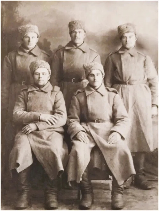 На фото первым слева стоит брат Степана Андрей, рядом с ним, посередине, – Степан, все остальные люди – их односельчане. Возможно, что и служили они вместе.